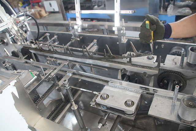 半自動(dòng)裝盒機(jī)只有封盒功能的紙盒包裝機(jī),又稱“封盒機(jī)”。半自動(dòng)裝盒機(jī),需用手工開盒、裝盒,再將裝有物料的盒子經(jīng)過機(jī)器封盒。自動(dòng)裝盒機(jī)帶有自動(dòng)開盒、入料、封盒功能的紙盒包裝機(jī)。全自動(dòng)裝盒機(jī)帶有自動(dòng)放料或與